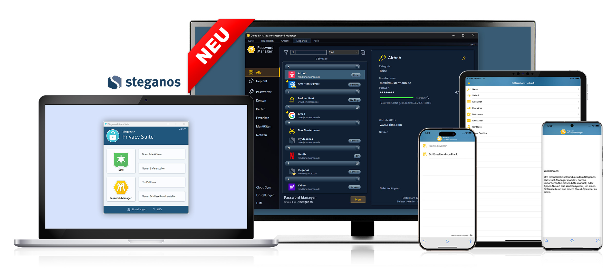 Digitaler Tresor & Passwort-Management. Zum Schutz Ihrer Daten und Privatsphäre.