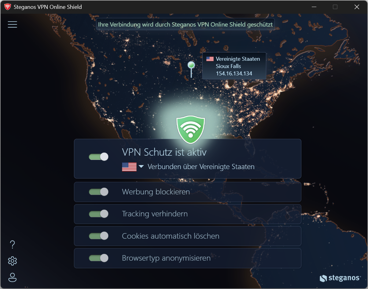 Im Gegensatz zu anderen Programmen schützt Steganos VPN Online Shield Ihre IP-Adresse nicht nur im Browser, sondern auch bei Downloadern.