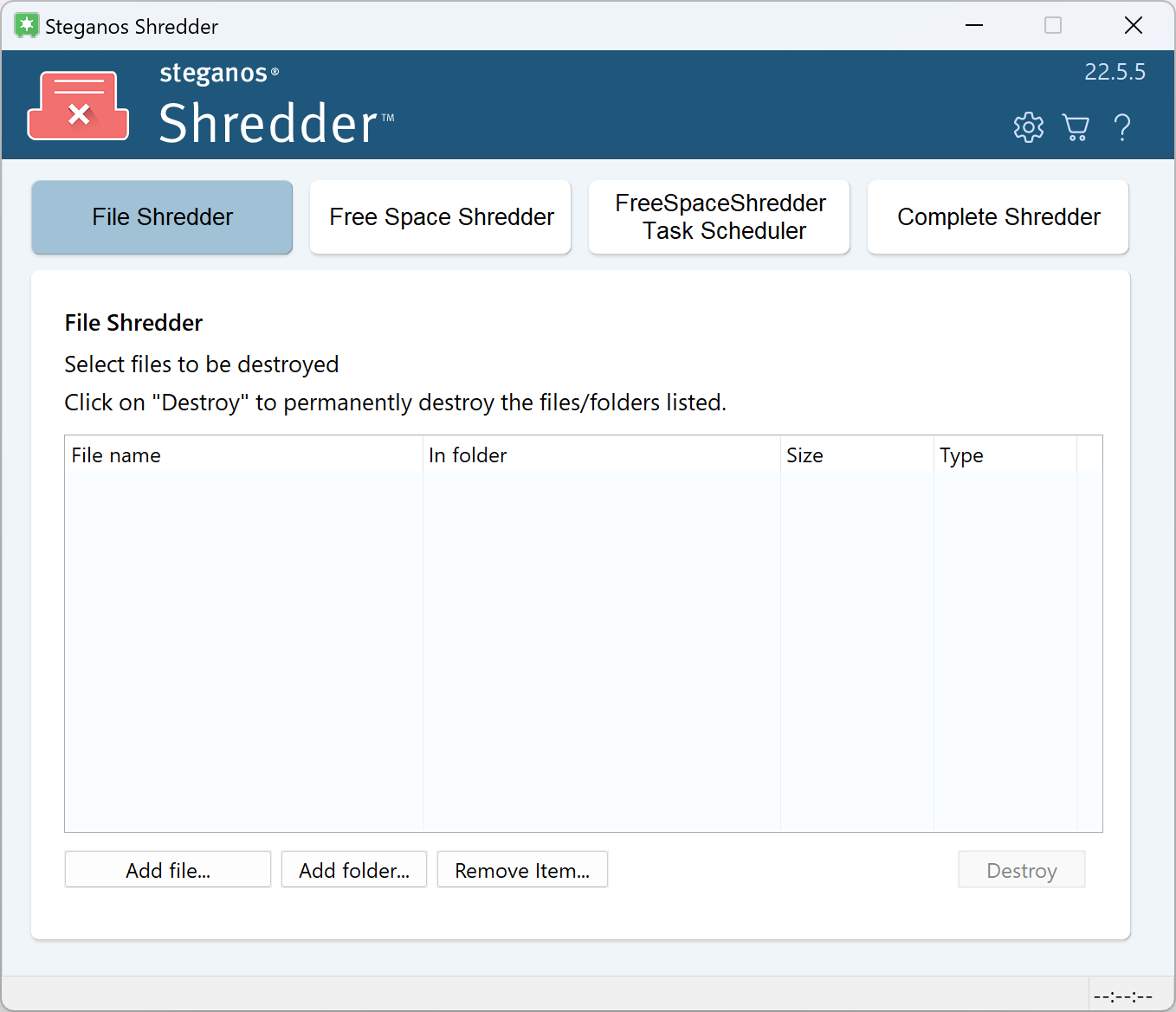 Securely delete files with no way for anyone to recover them - and wipe your HDD or SSD's free space.Screenshots