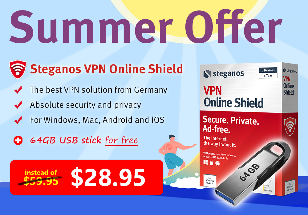 Using this data, your network provider and others can track your path through the Internet and monitor your activities. Protect your privacy with Steganos VPN Online Shield!